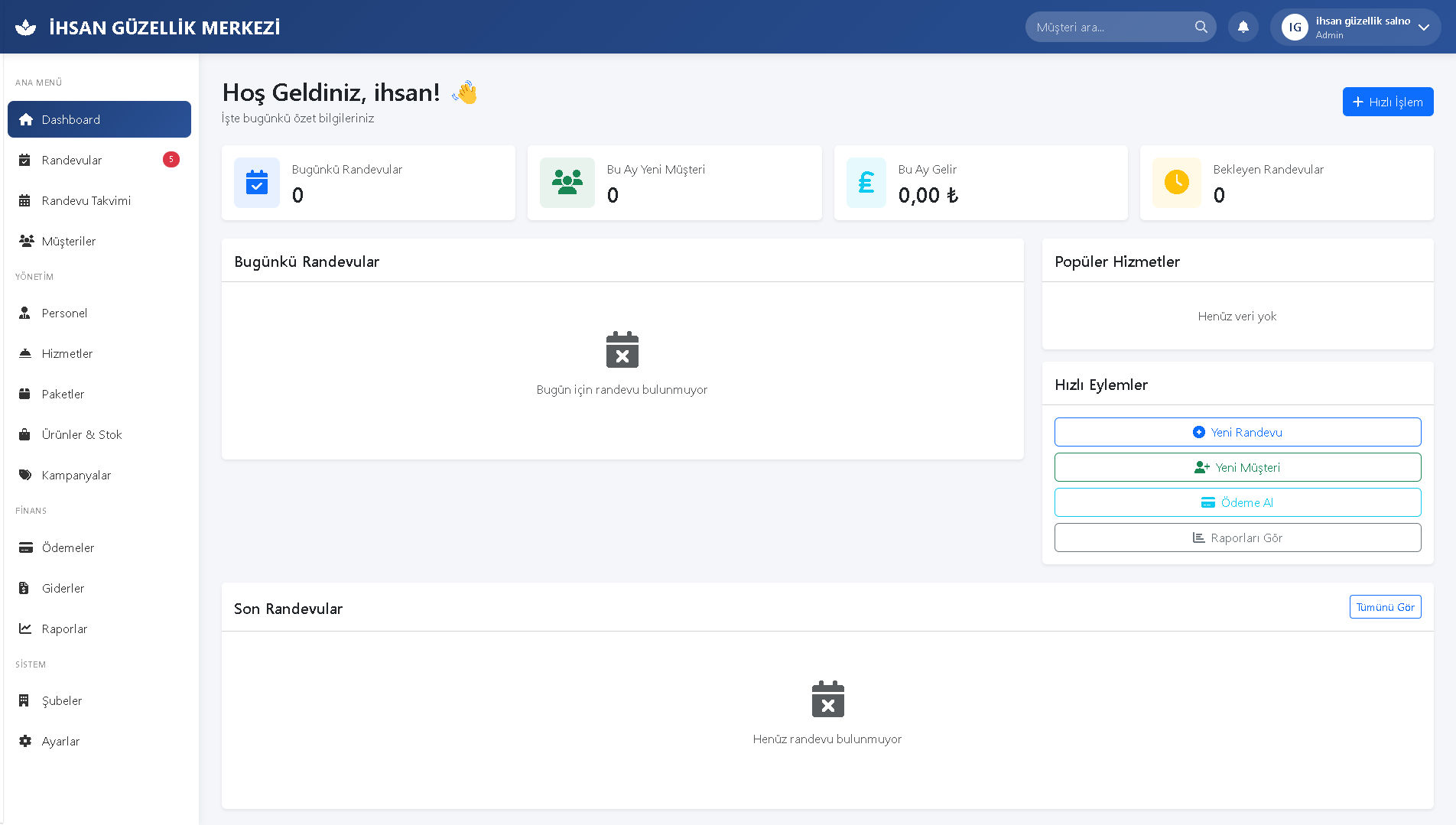randevu yönetiminden finansal analizlere, stok takibinden müşteri ilişkilerine